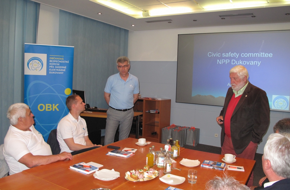 JE Dukovany představil maďarským kolegům za vedení elektrárny Michal Borovička, vedoucí odboru reaktorová fyzika. Já jsem představil Občanskou bezpečnostní komisi, její principy, činnost a výsledky. Následovala exkurse na trenažér blokové dozorny, informační centrum a prohlídka skladu s použitým palivem.