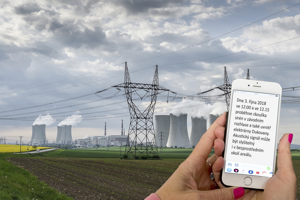 "Dne 3. 10. 2018 ve 12:00 a ve 12.15 proběhne zkouška sirén v závodním rozhlase a také uvnitř areálu elektrárny Dukovany. Akustický signál může být slyšitelný i v bezprostředním okolí areálu."