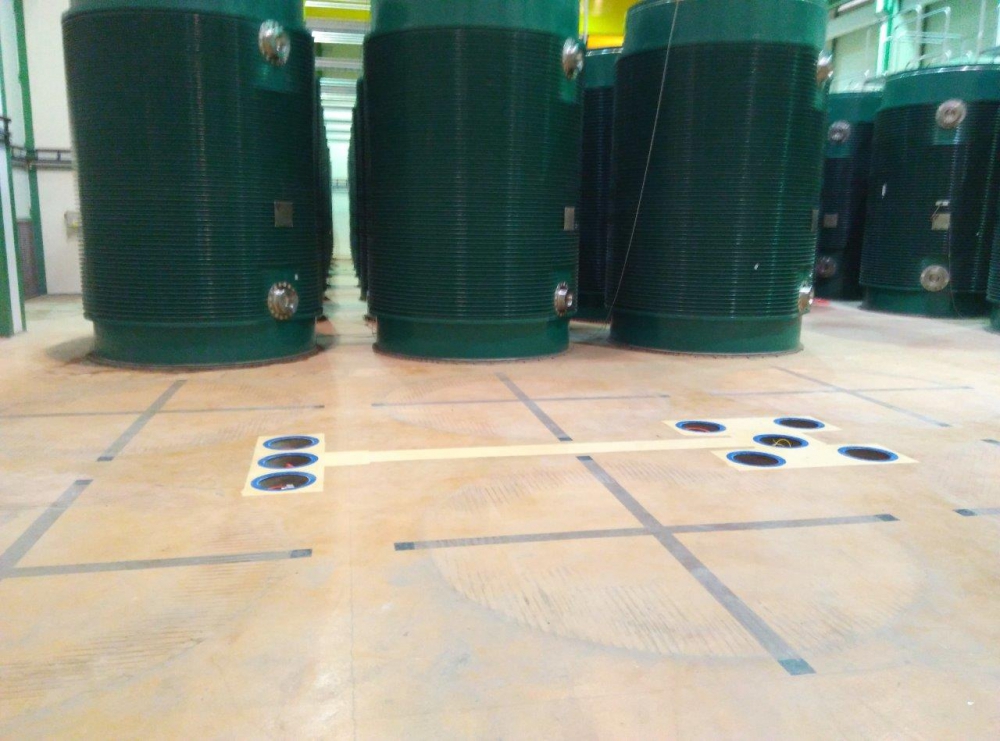 Vybouráním části betonu původní podlahy vytvořili stavebníci drážky pro nové kabelové chráničky. Vše z důvodu minimalizace prašnosti v prostoru haly prováděli v tzv. odsávacím stanu. Poté do vytvořených otvorů položili nové chráničky pro kabeláž měření teploty a tlaku. Na závěr kanály zabetonovali a nanesli povrchové ochranné vrstvy. Přesunuté obalové soubory byly poté umístěny zpět na své místo a připojeny k trvalému měření.