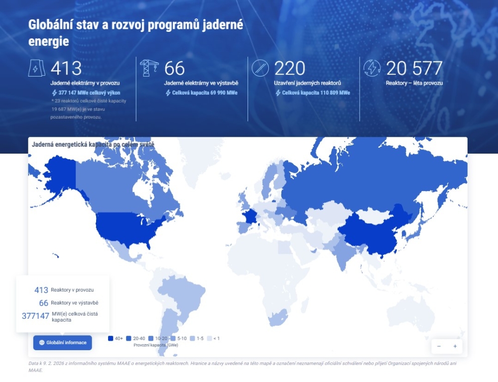- 413 jaderných bloků v provozu s celkovým instalovaným výkonem 377 147 MWe.