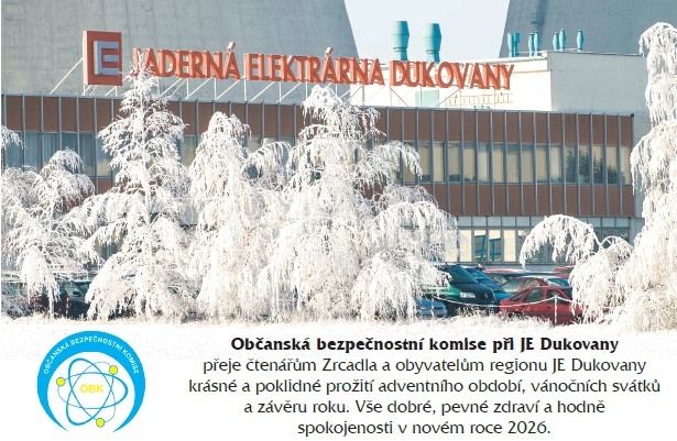 Občanská bezpečnostní komise při JE Dukovany přeje pěkné vánoční svátky a do nového roku hodně skvělých nápadů, ale také i hodně odvahy a sil je realizovat. Ale zejména zdraví, pohodu a dobrou náladu.